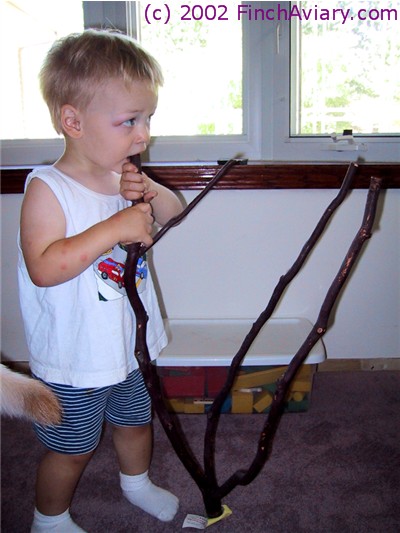 of the aviary to create a swinging perch.